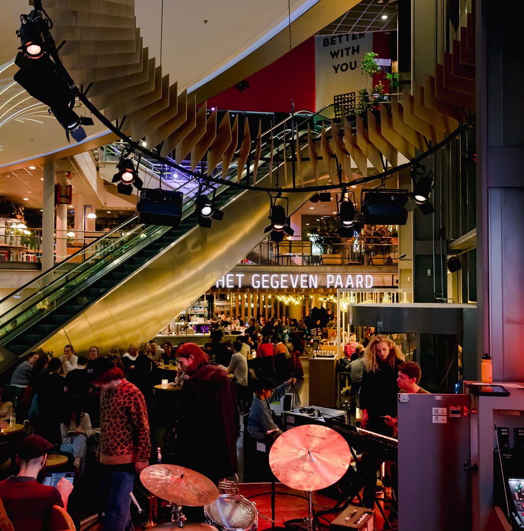Het Gegeven Paard is dé plek in Utrecht om voor of na een concert in TivoliVredenburg te genieten van een drankje of een hapje eten. Neem binnen plaats of zoek een plekje op het terras aan de singel.